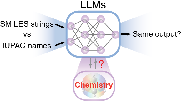 - August 8, 2025: Consistency paper is out at Digital Discovery! We evaluate the consistency of LLMs when asked with SMILES strings vs IUPAC names. We found low consistency even after mapped training and KL regularization, suggesting LLMs may capture surface-level patters instead of underlying chemistry.